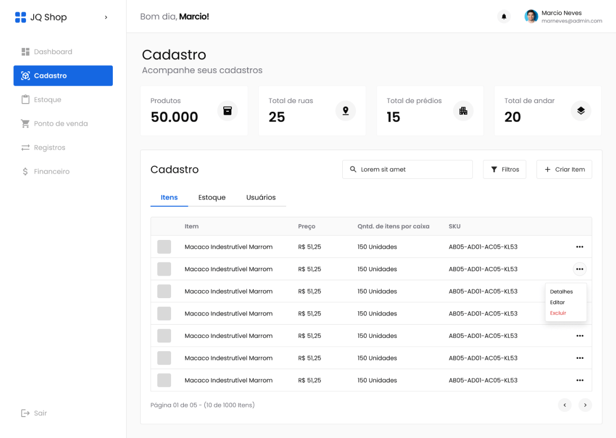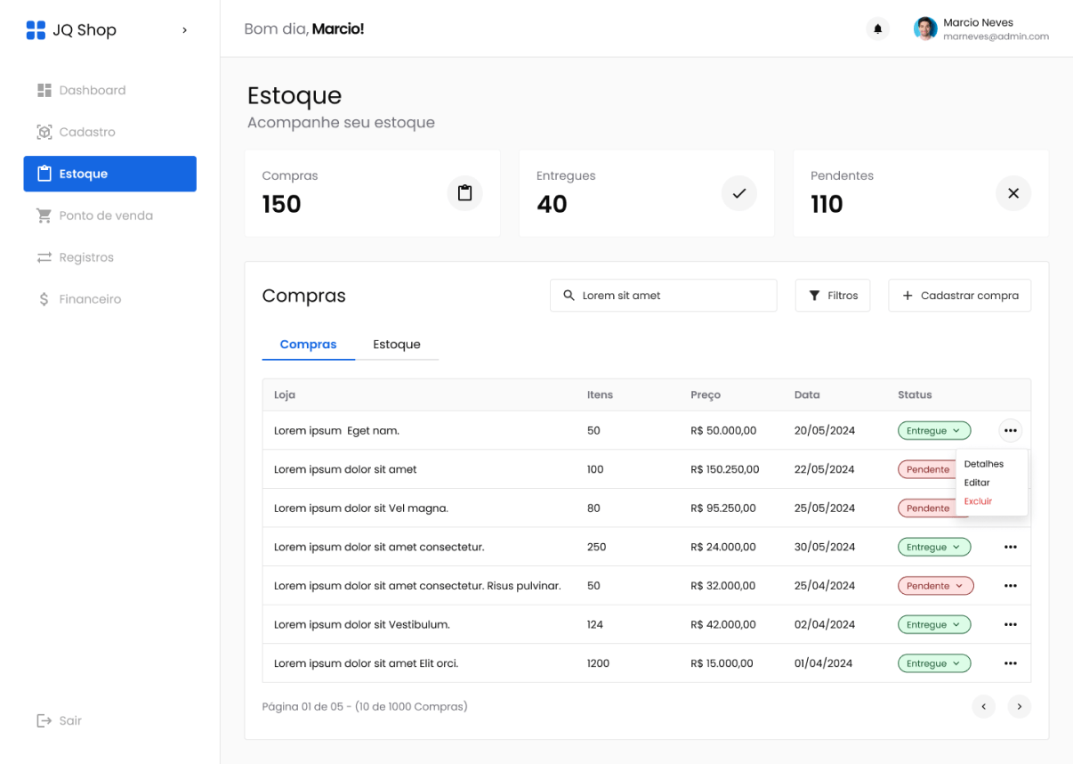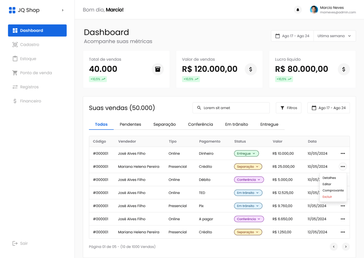 Criar um sistema que fosse intuitivo e funcional tanto para administrativos quanto para estoquistas e financeiros reforçou a importância de projetar experiências personalizadas.