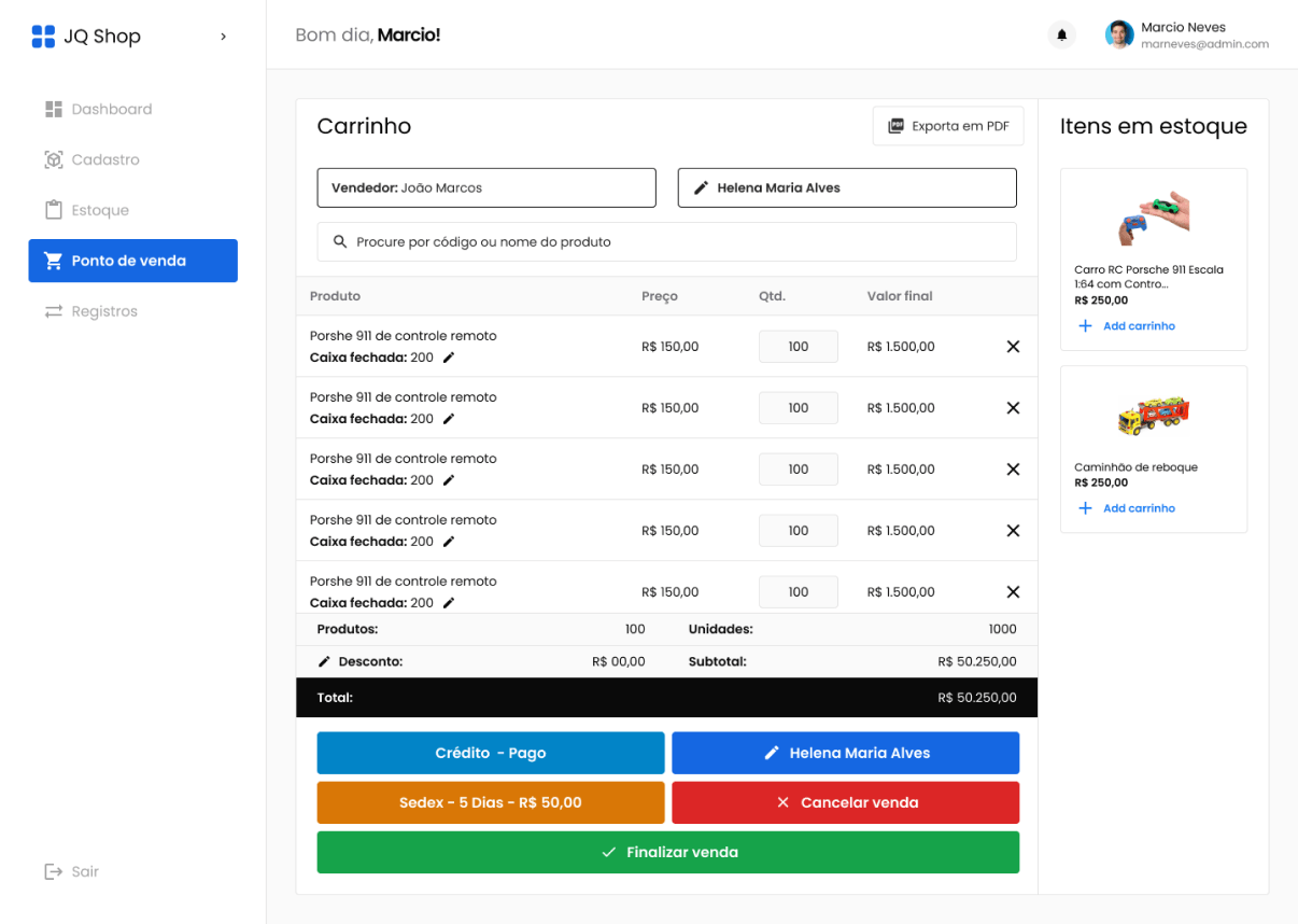 A JQ Shop, uma grande varejista e atacadista de produtos importados, enfrentava um desafio comum: processos internos confusos e pouco integrados. Para gerenciar estoque, finanças, vendas e funcionários, a equipe dependia de vários sistemas desconectados, o que gerava retrabalho, falta de eficiência e dificuldades no dia a dia.